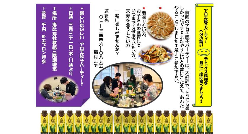 そこで、アロエ餃子パーティーを開催することにしました。アロエ餃子でデトックスして、芯の健康な体にしましょう!
